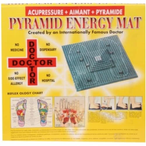 Mat WITH MAGNETIC PYRAMIDSCombines accupresure, pyramid and magnet technologies Promotes quick stimulation to your body and healthPromotes blood circulationBoost energy levels all dayBY STEPPING ON THE MAT YOU GET RELIEF- FROM BACK PAIN - FROM INSOMIA- FROM BACK PAIN, KNEE, THIGH ACHES- FROM MIGRANE AND HEADACHE- FROM TENSIONAccupressure Pyramid Energy Mat WITH MAGNETIC PYRAMIDSCombines accupresure, pyramid and magnet technologies Promotes quick stimulation to your body and healthPromotes blood circulationBoost energy levels all day