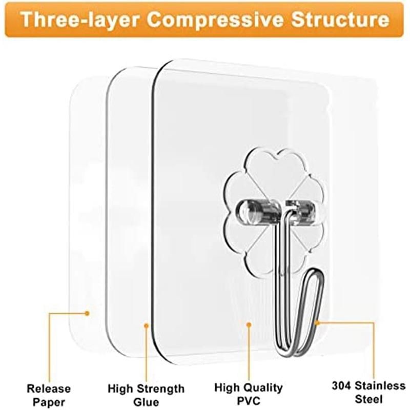 Rust-Proof and Waterproof Adhesive Hooks: There are 12 self-adhesive hooks in one pack, the wall hooks for hanging are made of stainless steel and pc material, rust-proof, waterproof and durable. transparent design makes it virtually invisible, bringing to your home and office life without compromising aesthetics.