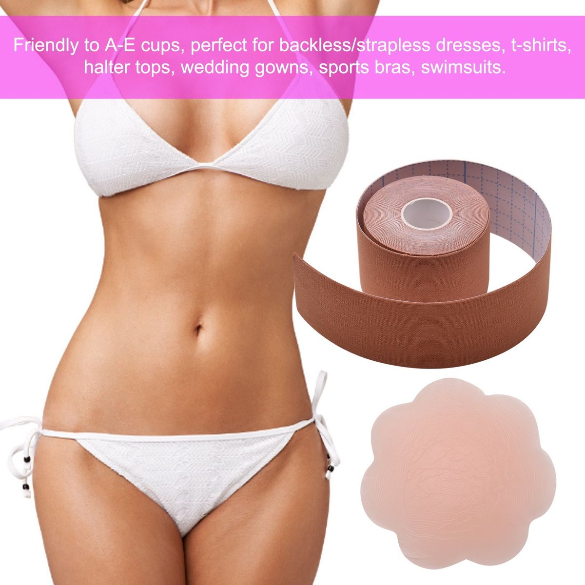 Friendly to A-E cups, perfect for backless/strapless dresses, t-shirts, halter tops, wedding gowns, sports bras, swimsuits.