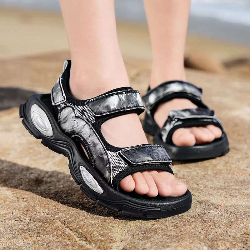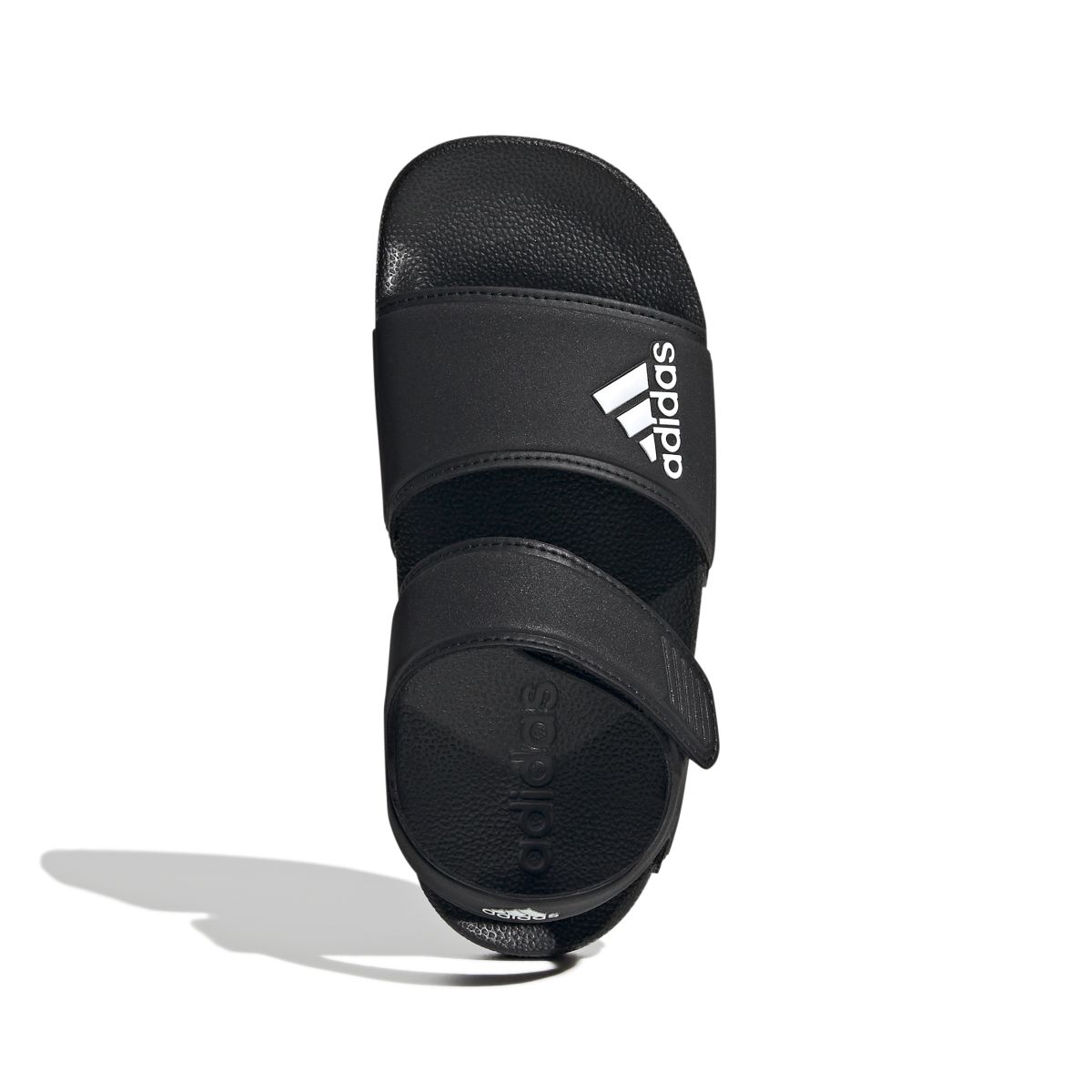 Inspired by classic Adilette slides, these kids' adidas sandals are perfect for sunny days of play in and out of the water. A hook-and-loop strap creates an easy on and off. The quick-drying upper lets them play in comfort until they're back on dry land.