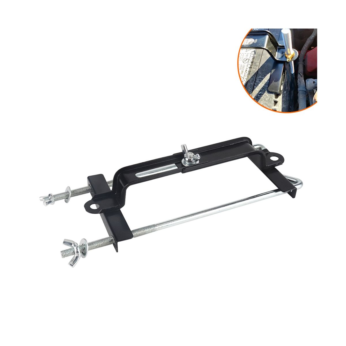 High Quality: This car battery hold down is made constructed with premium iron & stainless steel material, sturdy, and available for long service life.Special spray process for enhancing its corrosion and rust resistance.