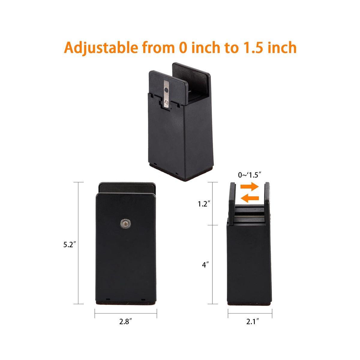 Detailed Information About The Product:[HARD PLASTIC MATERIAL] The adjustable furniture risers are made of heavy-duty sturdy hard plastic that can hold up to the weight of the heaviest furniture in your home or office, they can safely support a total of 20,000 lbs. They won't crack like other risers. High-density bottom felt pads protect your hardwood, tile linoleum floors and carpets from scratches and scuffs.