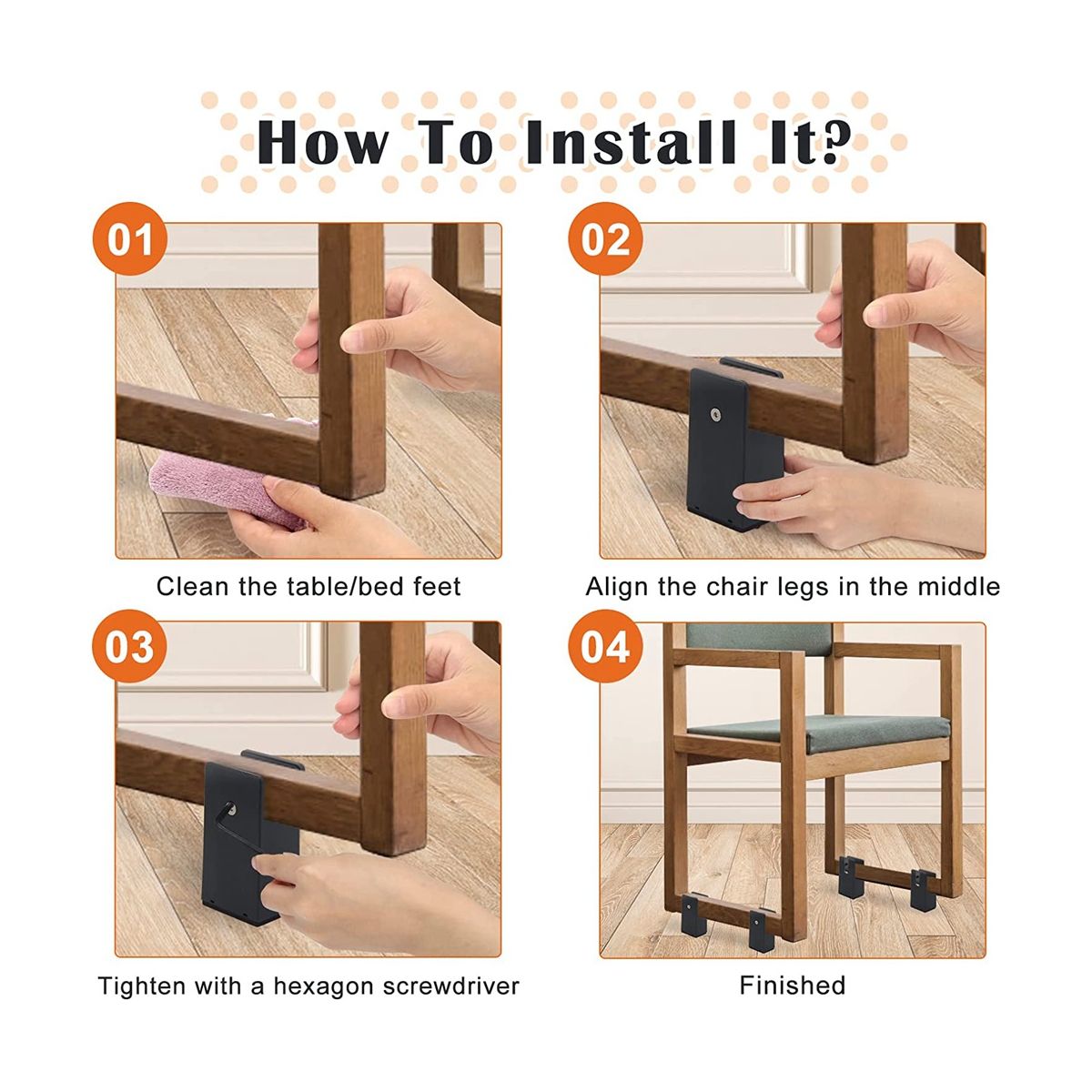 [Protect Your Hard Floors From Scratching] The bottom of the sturdy sofa leg riser is made of high-density felt furniture pad bottom, and the bottom felt pad protects your floor from scratching. Heavy duty and smooth edges can hold weight safely without causing any dents or cracks on hardwood or hard surfaces. Protect your hardwood, tile and linoleum floors from damage and wear and tear.