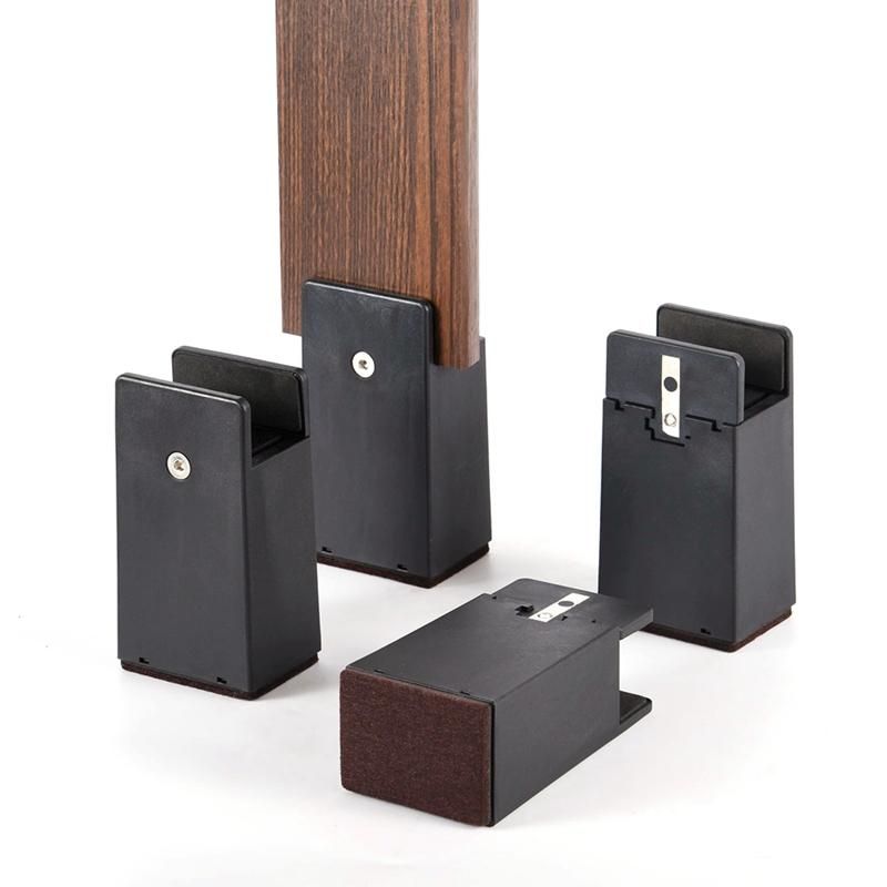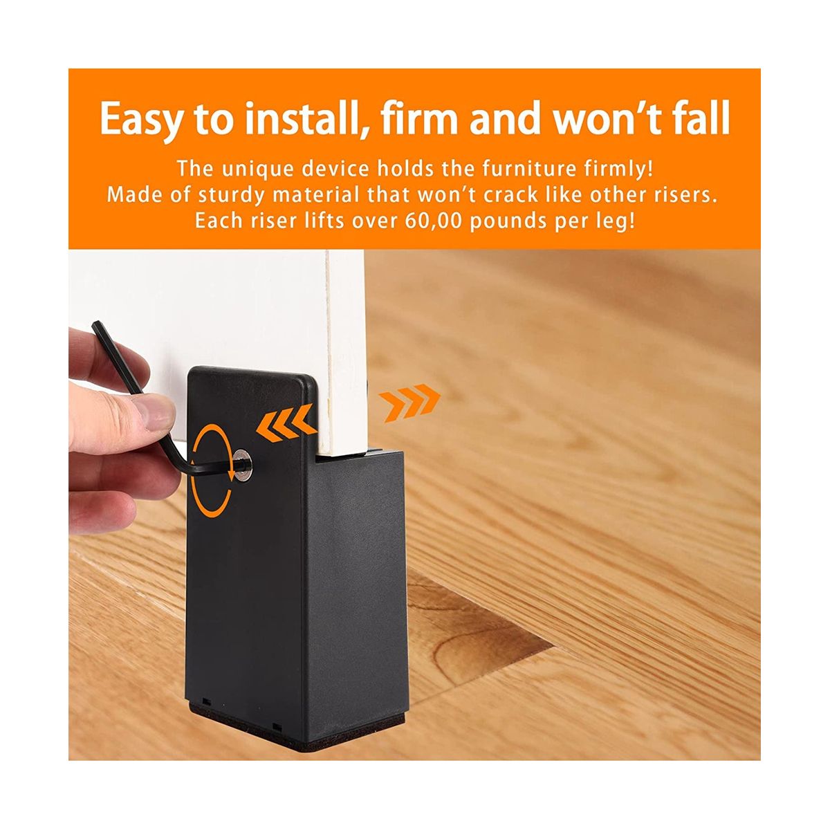 HARD PLASTIC MATERIAL The adjustable furniture risers are made of heavy-duty sturdy hard plastic that can to the weight of the heaviest furniture in your home or office they can safely support a of 20000 lbs They 't crack like other risers High-density bottom felt pads protect your hardwood tile linoleum floors and carpets from scratches and