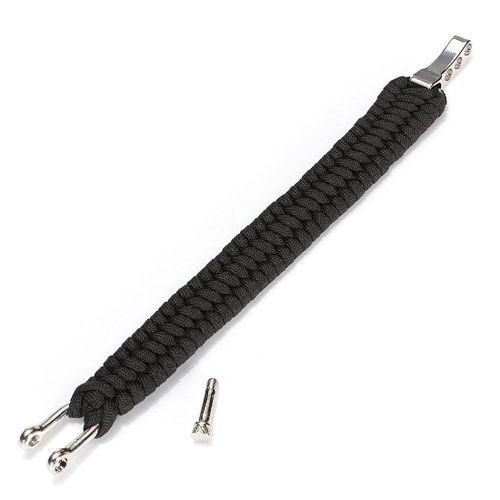 Knitted up by several feet of parachute cord which can be used in an emergency or packaging.