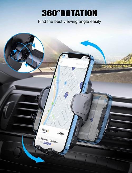 [360-degree rotation and adjustable display Angle] The 360-degree rotating ball joint provides the ideal display Angle, allowing quick switching between vertical and horizontal viewing angles. No need to look down at the phone screen when answering a call, making a notification or responding to GPS navigation. Carbine and cell phone holders with rotating balls are compatible with vertical and parallel exhaust ports. Grab the air outlet and easily insert and remove the phone with one hand.