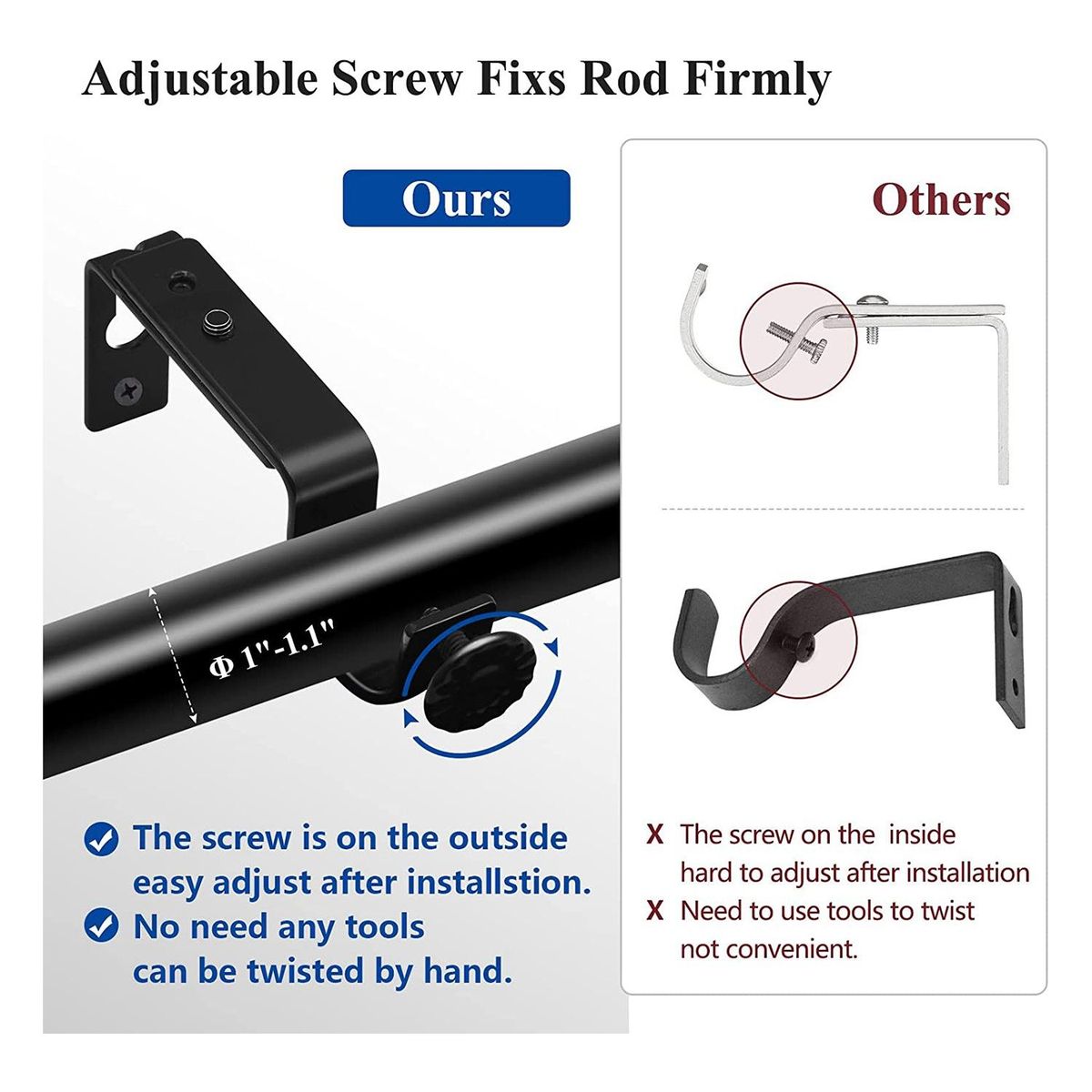 Muti- UsageBlack curtain rod brackets install with screws fit for many types wall can be used as curtain brackets for curtain rod closet rod shower rod DIY project etc Curtain rod hardware brackets have exquisite black paint fit for style of home perfect decorative your house You can use adjustable curtain brackets at office home kitchen etc