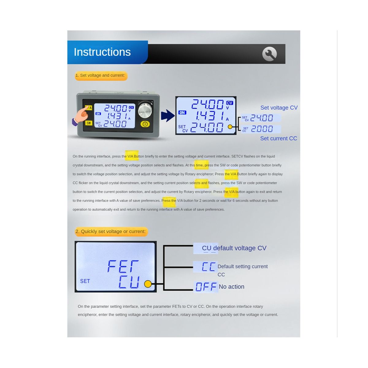 Numerical control adjustment, precise and fast, step-down output, output voltage Material: plastic