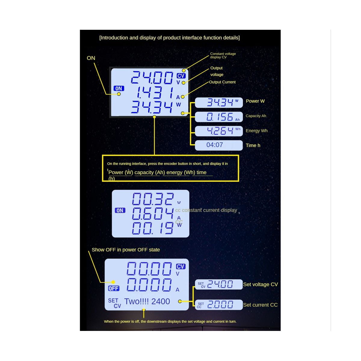 Detailed Information About The Product:LED can display input/output voltage, output current/output power/output capacity/output time.