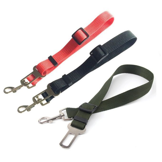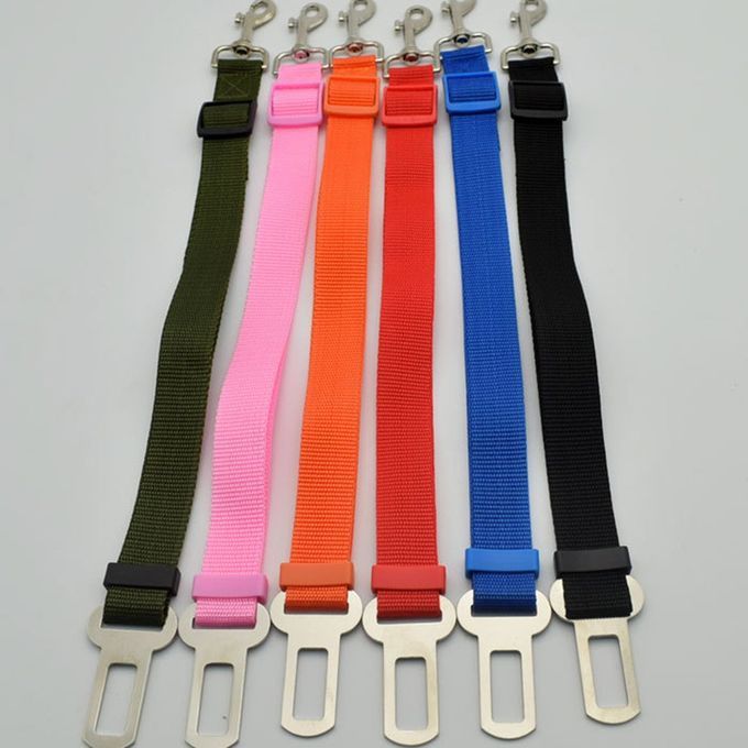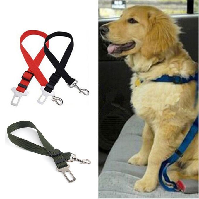 Universal dog seat belt is a pet restraint device designed to help protect your pet while riding in an automobile. This is just like a regular seat belt only it is for the protection of your dog or cat. Attaches easily to dog's harness. Anchors to seat using your seat belt hardware.