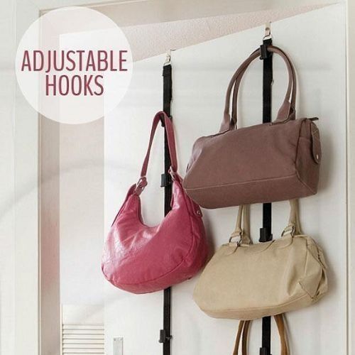 No tools or hardware requied for over-the-door option4 Hardware included for wall-mount option5 Also great for hats,scarves,and more6 The most convenient way to store a wide range of items including purses,clothes,hats,caps,scarves and more.7 8 adjustable hooks per strap can be moved and adjusted to fit your spacing needs.The self adjusting elastic strap allows the purse rack to stretch to match door heigt.8 With both an over the door and wall mounting option,