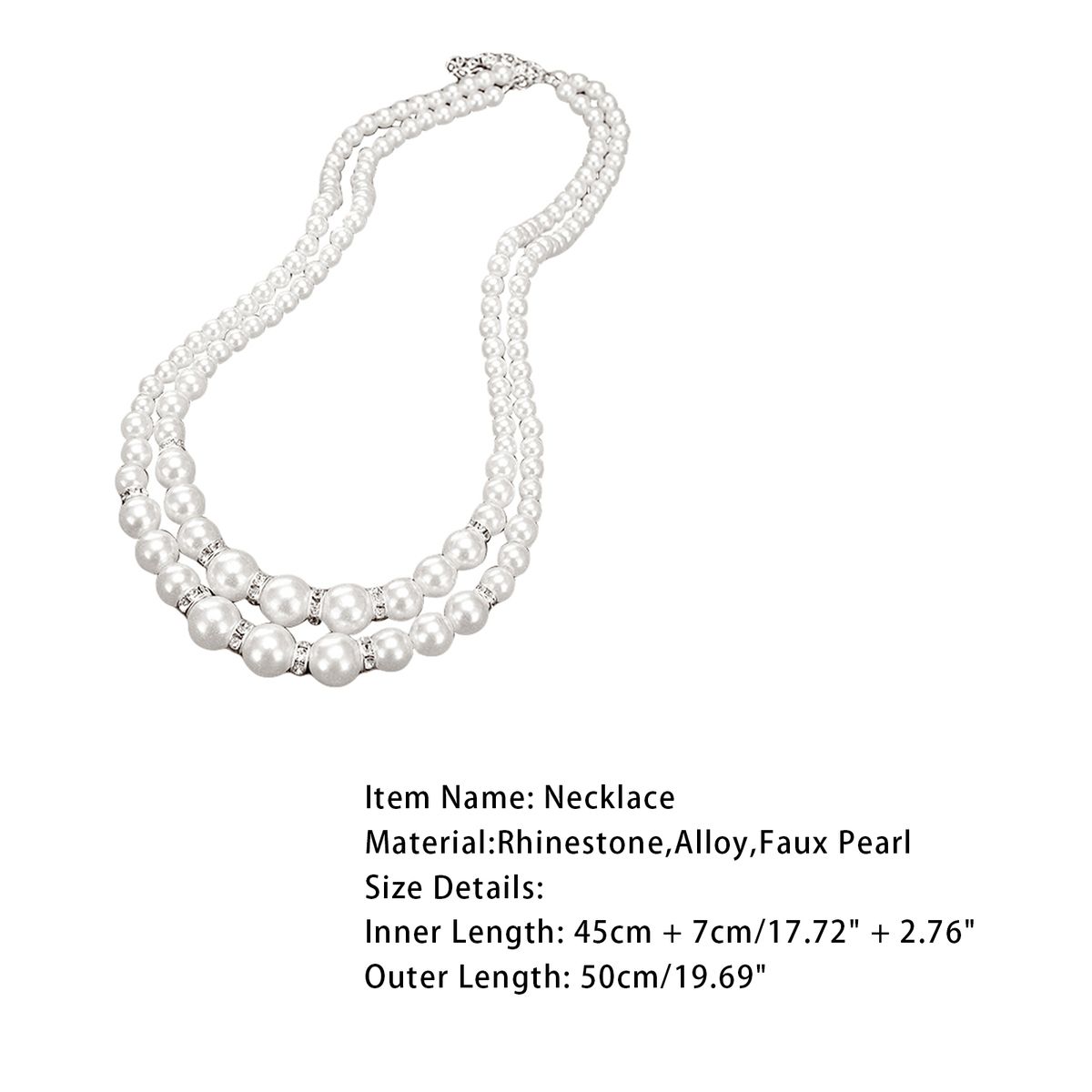 Made of premium alloy, faux pearl beads and rhinestone material, the necklace is luxury and durable.