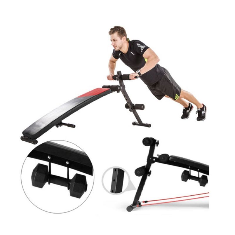 This sit up bench by tectake is ideal for completing a wide range of exercise which target a variety of muscle groups with the body such as Abdominal and back muscles.The bench is perfect for improving fitness, stamina and muscular strength. The workout bench is a great addition to any home gym and can be use for decline bench weight training or cardio vascular exercises. The ab bench comes with a pair of dumbbells and stretch bands which can used for chest and arms exercise.Order your sit up bench with dumbbells and resistant bands√ Includes.dumbbells.√ 2 Training ropes 85cm with soft handles.√ Robust steel pipe frame provides firm footing.√ Adjusting for optimal training results.√ Modern