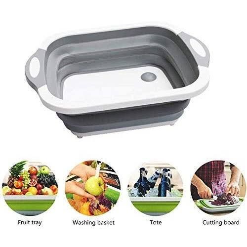 Collapsible Cutting Board with Dish Tub - Basket with Draining Plug - Collapsible Colander and Dish Sink Tub Storage Basket - 3 in 1 Multifunction Kitchen Kit