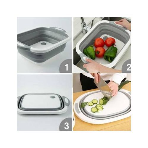 Not just a DISH TUB and not just a CUTTING BOARD!This Multi-Function Kitchen Tool is a chopping board with washing basket,From the fresh fruits to any vegetables can be used!You can cut and wash the food in just one step,Folding and adjustable, can help you really much in saving your kitchen space!Designed to increase efficiency and speed up food preparation,Making your life easier and saving you much needed space, time and effort!