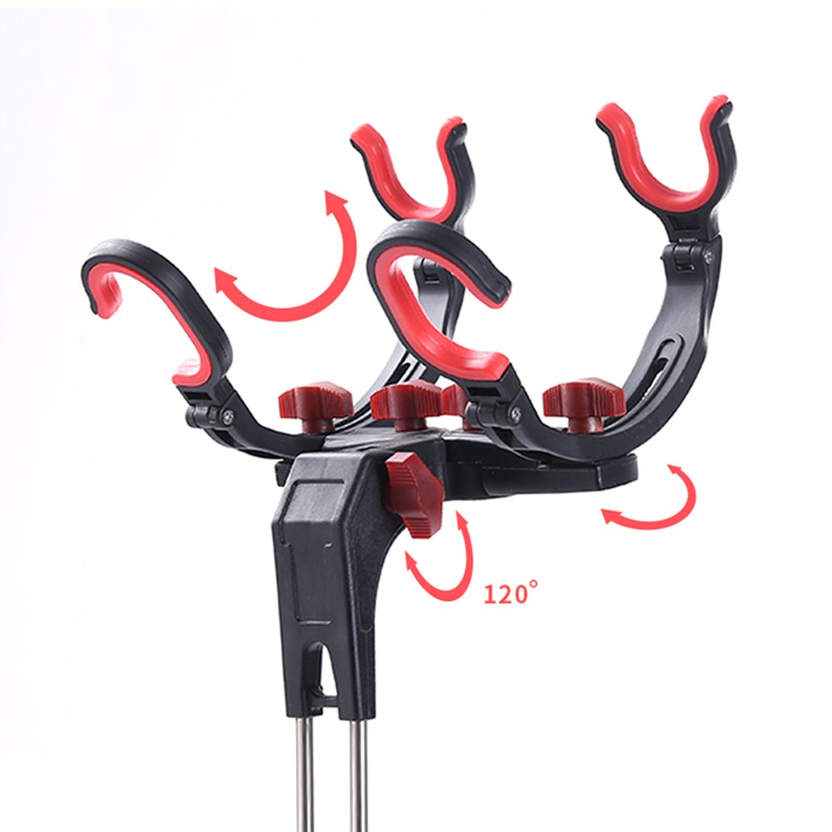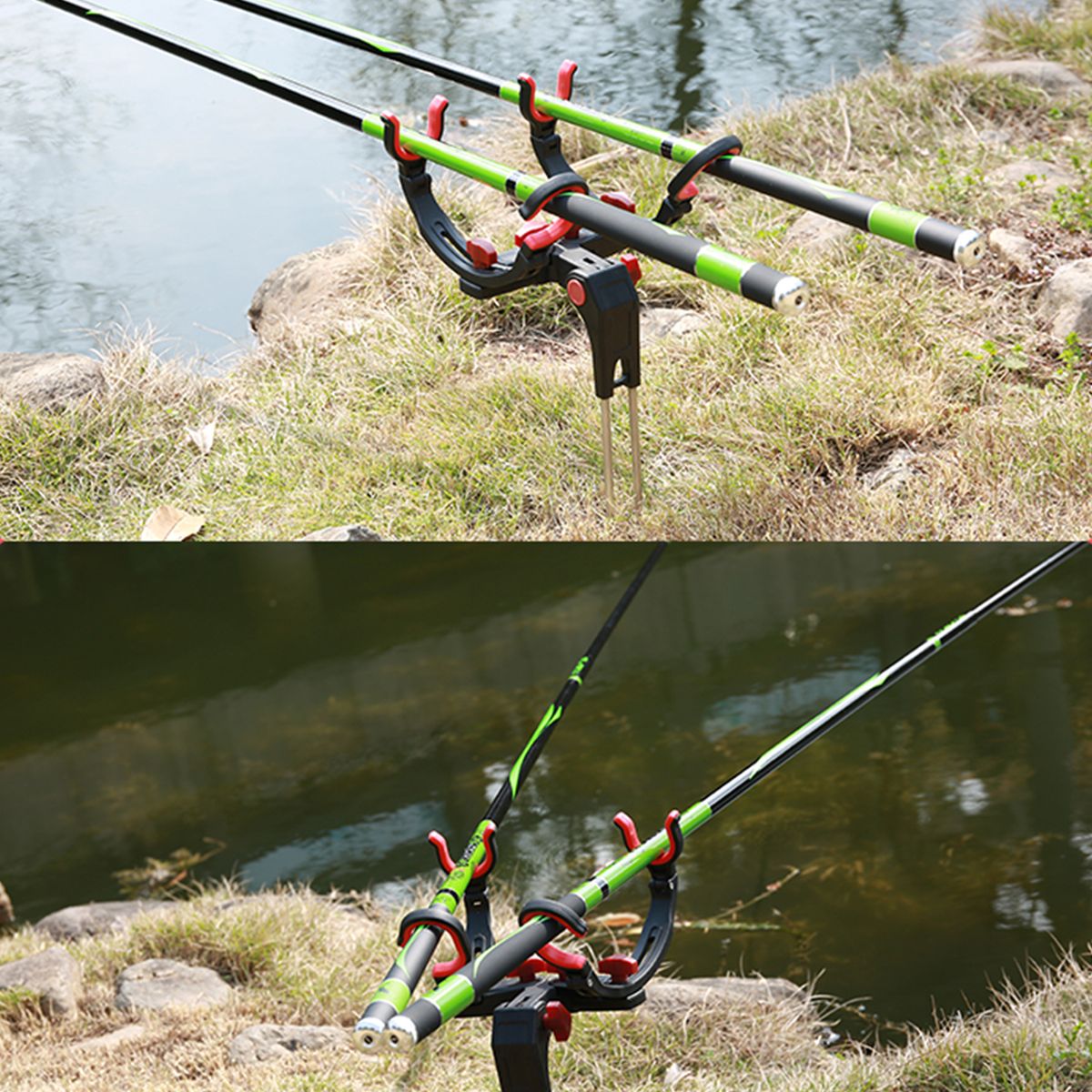 This fishing rod stand is made from ABS plastic and stainless steel, super strong and durable. It can hold two fishing rods at the same time. The adjustable design allows you to adjust the direction. It is a very convenient tool for fishing.