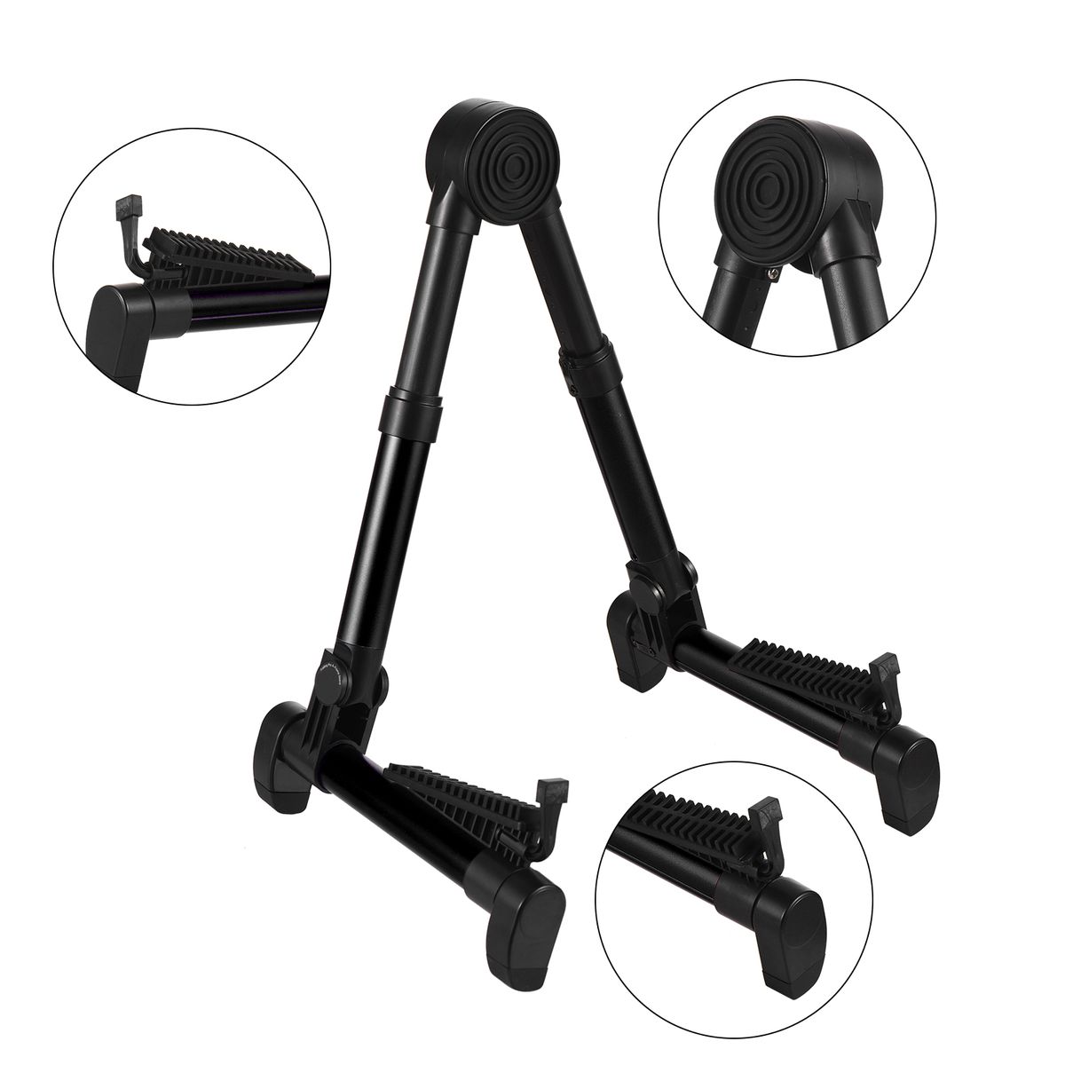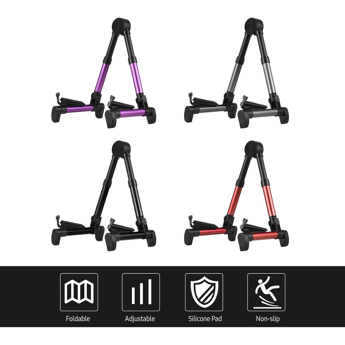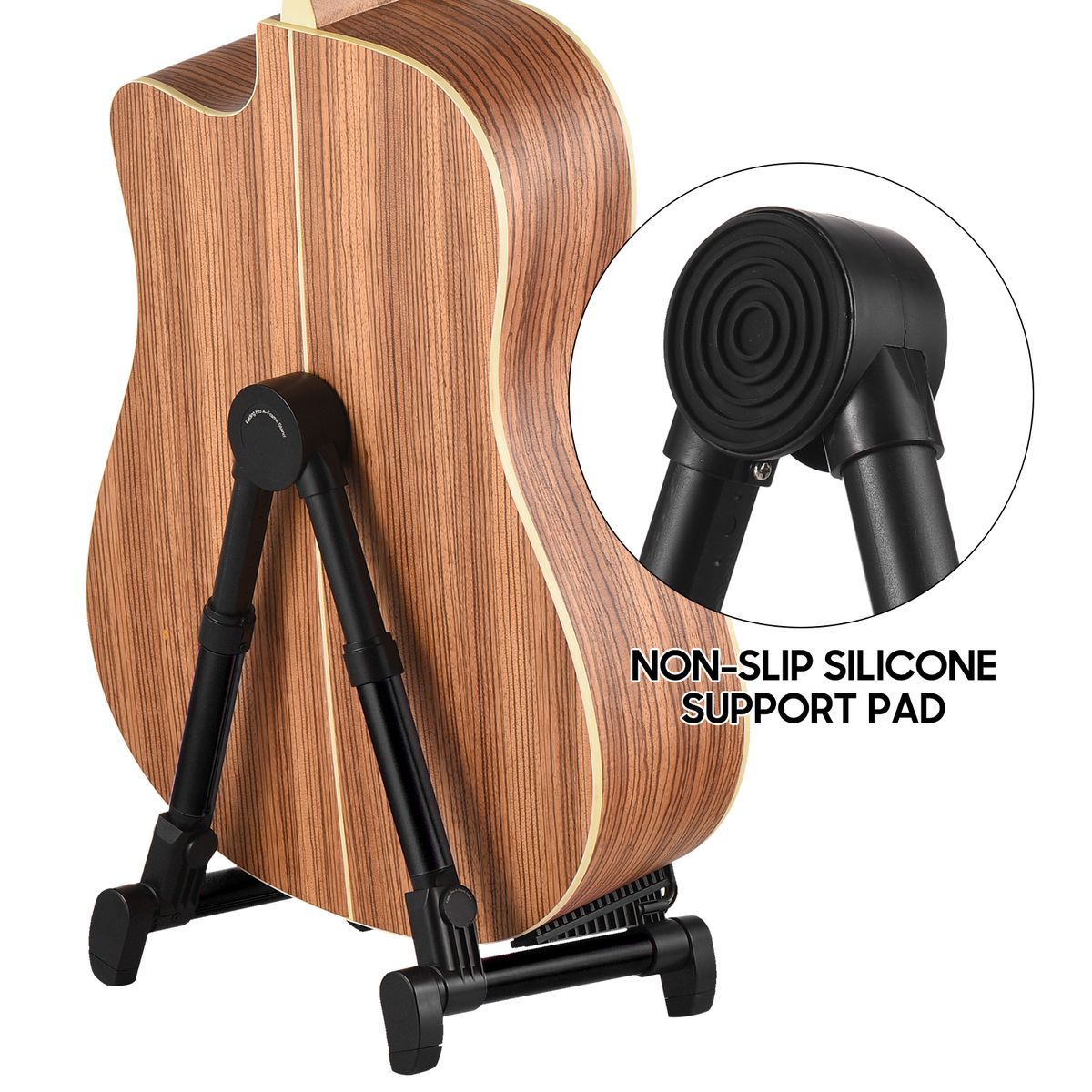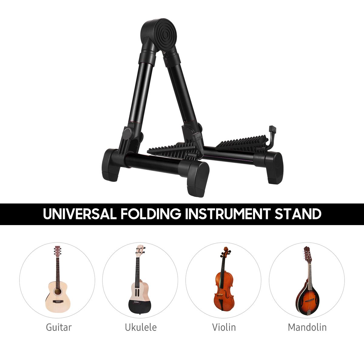 Universal adjustable folding stand is suitable for guitar, ukulele, violin, bass and more kinds of similar size musical instruments.
