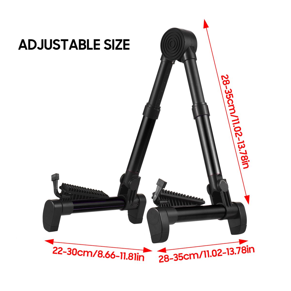 Adjustable unfolded size, easy to use. Hold folk/ classic/ electric guitar, bass, ukulele, violin, or the like securely.