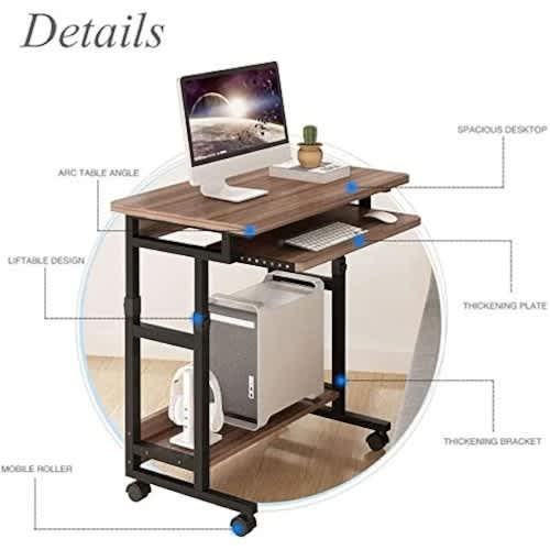 FUNCTION: Adjustable height, perfect for both adults and kids to use under different environment.DESIGN: 4 wheels bottom design, it's easy to move around and at home with it's light weight. Wheels can also be locked to prevent unwanted movement.MATERIAL: Natural Wooden Surface, non-toxic and smooth, it's comfortable to touch and lay on the desk. Premium quality ply board make it easy to clean - Waterproof & Dirtproof.Product Dimensions: L 23.6" x W 15.8" x H minimum 26" - maximum 36" | ADJUSTABLE. Easy to assemble with included components such as screw driver, tightener, wheels etc.MULTI PURPOSE: It is steady enough to hold laptop and books and other day to day items. It can also be used as a snack tray table. It is not recommended to use heavy items like printer