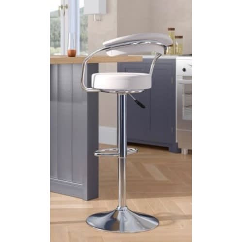 Update and add seating to your kitchen with this retro cutout stool. Made from a steel frame in a chrome hue, it’s upholstered leather that provides a textural contrast to the shiny chrome. Suited to contemporary kitchens and trendy bars alike, it adjusts from bar height to counter height thanks to a hydraulic lift, and swivels 360° for easy conversations. A handy footrest gives you space to place your toes while you're eating or chatting.