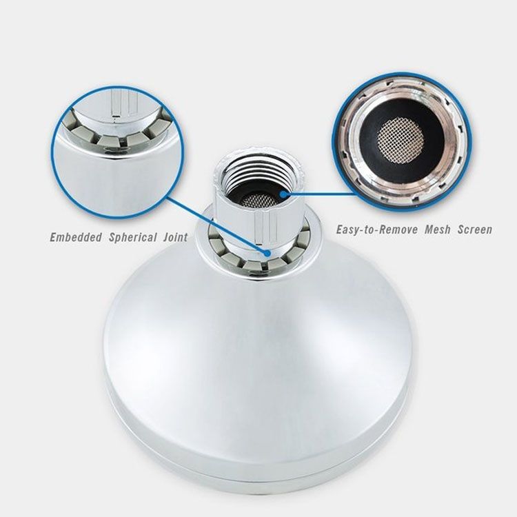 8. Features: adjustable swivel joint, booster, water saving