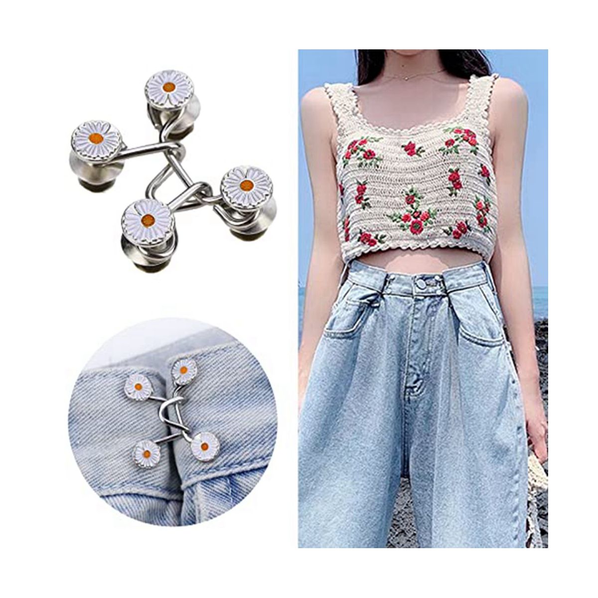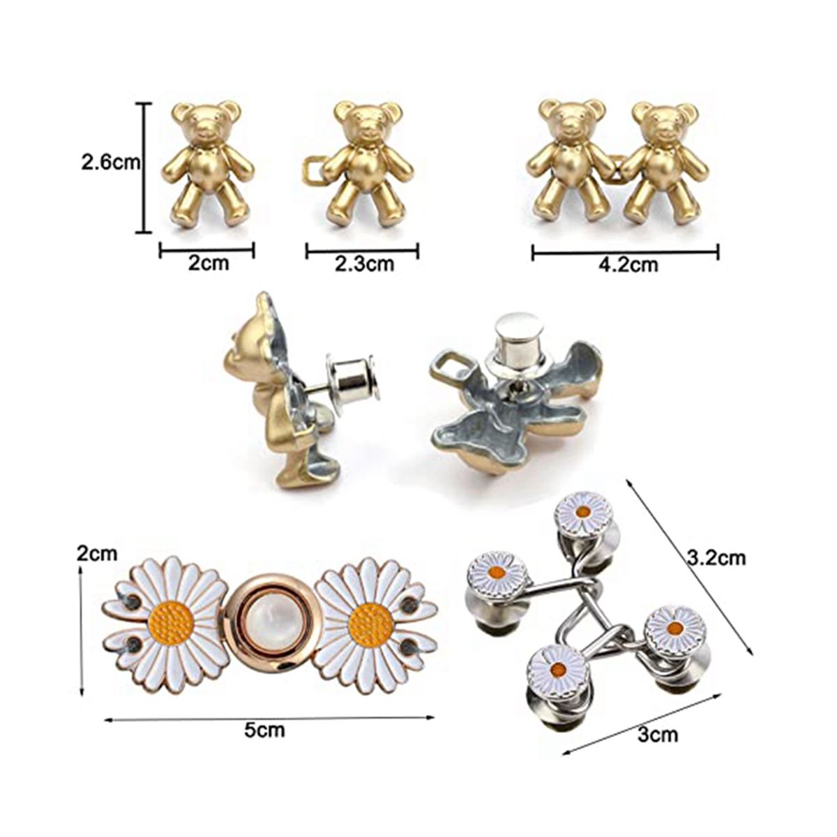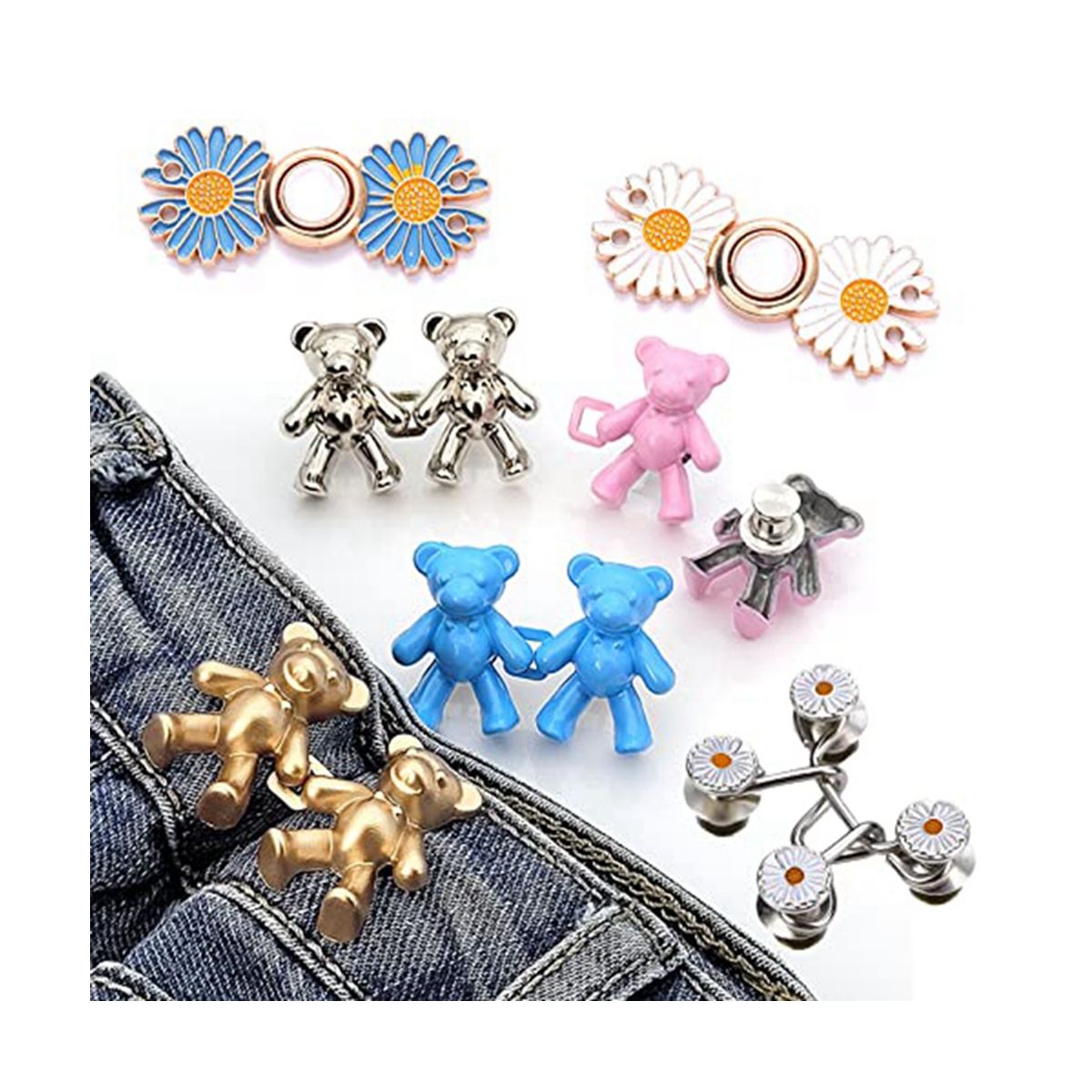 [Fashion Jean Tightener]You will get total 17Set jeans buttons: 24Pcs/12Set bear button pins, 10Pcs/5Set flower button pins. Save some of this button pins can solve the problem of too loose clothes in time.
