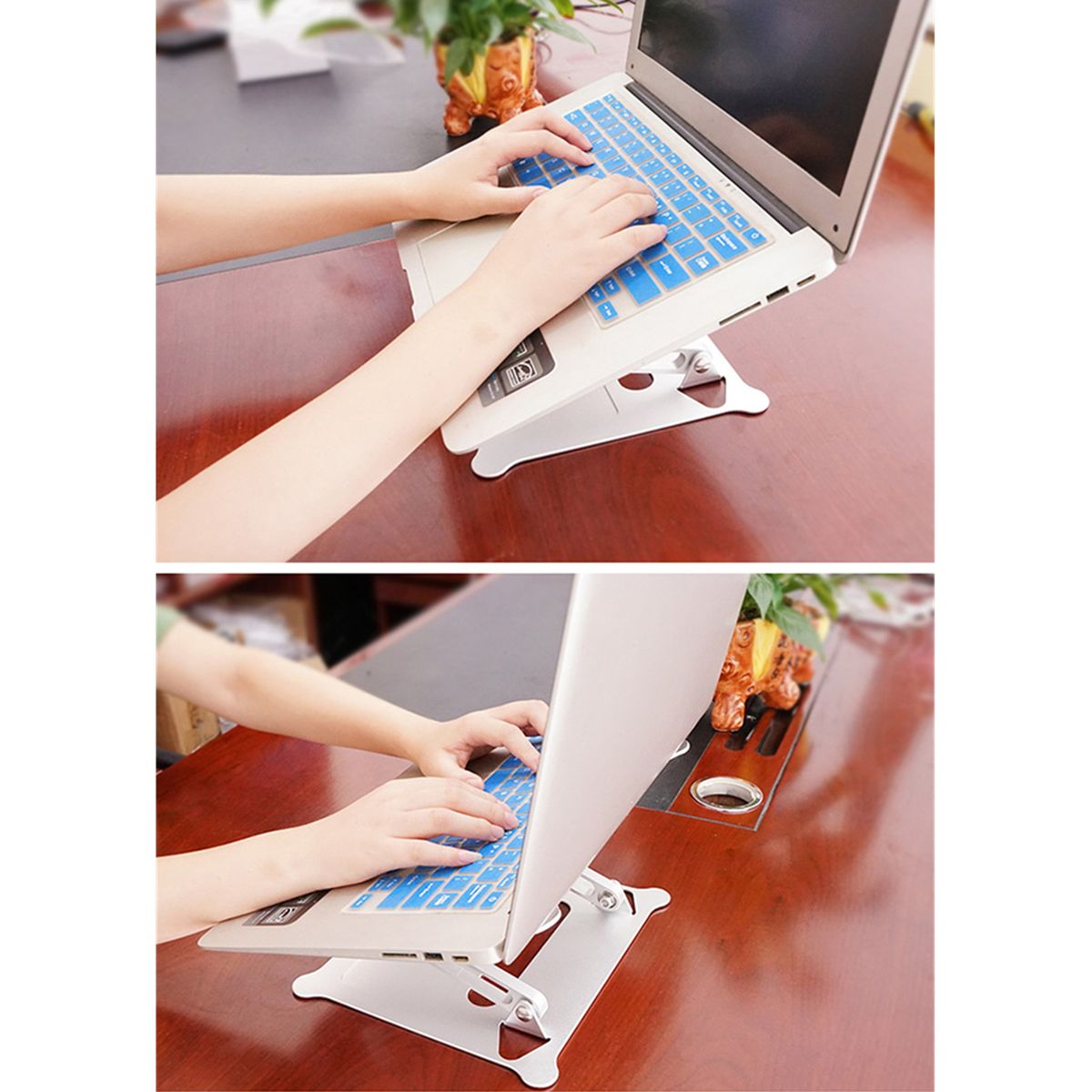 The hollow-out design at the bottom enhances air circulation and speed up heat dissipation. And the anti-skid pad on the rack grips the pc computer tightly, ensures your laptop is stable on the stand, and prevents scratches.
