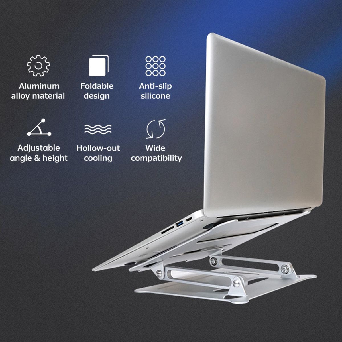 Buy Adjustable Laptop Stand Portable Folding Aluminum Alloy Non-slip Height and Angle Adjusted Support 10''-15.6'' Laptop Tablet Bracket Riser Holder Computer Stand Silver in Nigeria