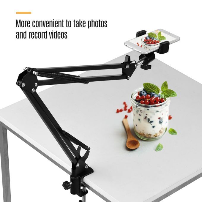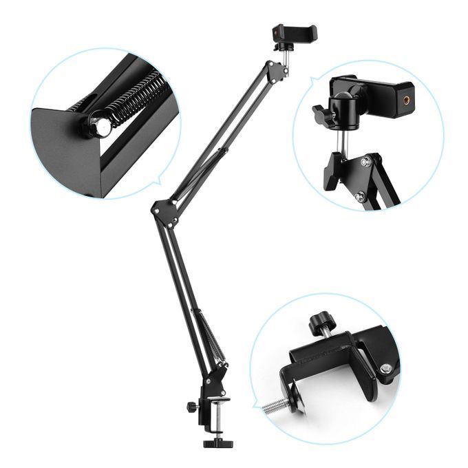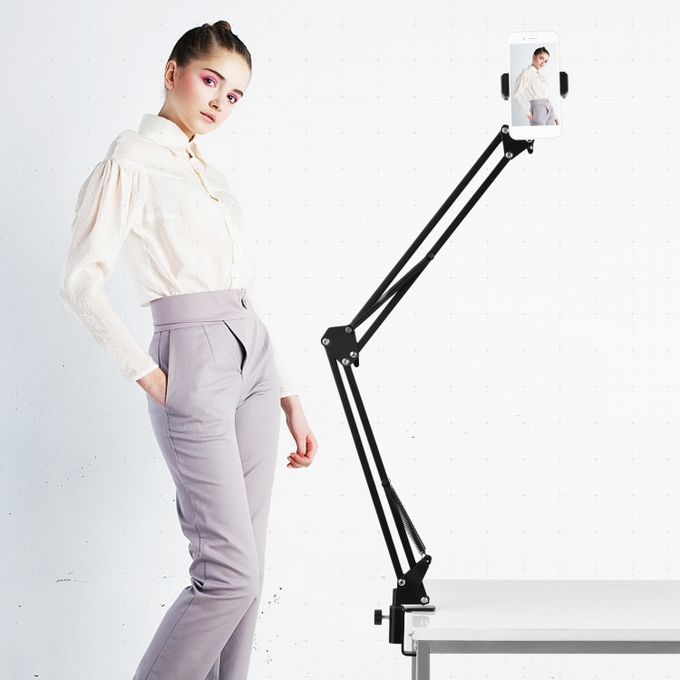 Scissor arm metal stand designed for indoor smartphone video recording, network broadcast, online singing and chatting, etc.
