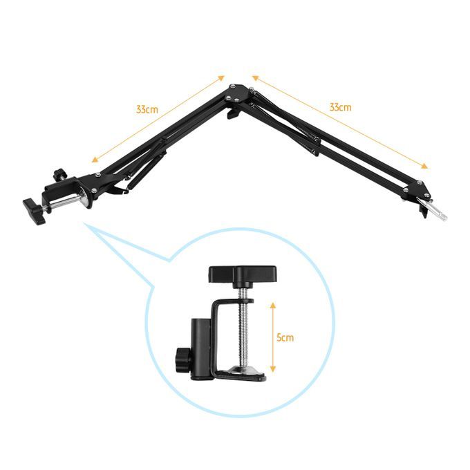 The included table mounting clamp enables you to mount the stand on the table with thickness no more than 5cm easily.