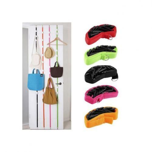 Purse rack hangs on any door or wall2. Simple design features 2 self-adjusing elastic straps with 9 adjustable hanging on each 3. No tools or hardware requied for over-the-door option4. Hardware included for wall-mount option5. Also great for hats,scarves,and more6. The most convenient way to store a wide range of items including purses,clothes,hats,caps,scarves and more.7. Adjustable hooks per strap can be moved and adjusted to fit your spacing needs.The self adjusting elastic strap allows the purse rack to stretch to match door height.8 With both an over the door and wall mounting option,this organizer will fit your specific needs.