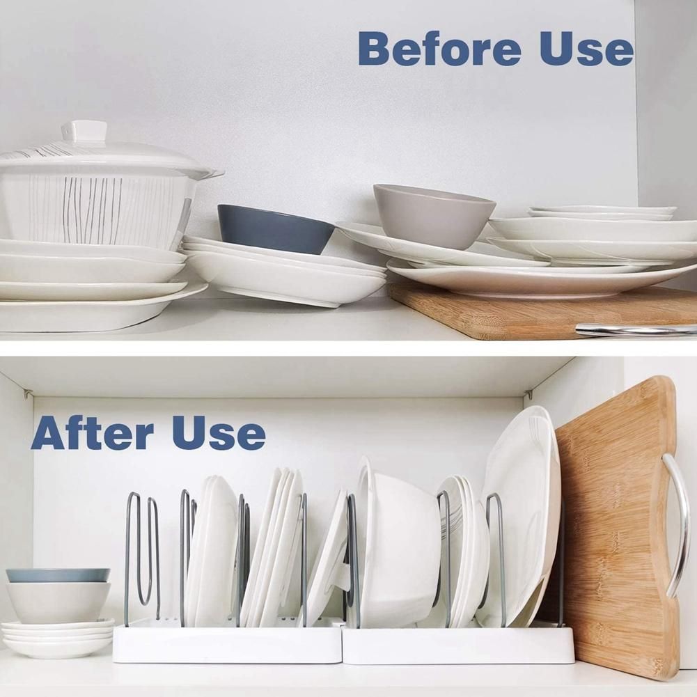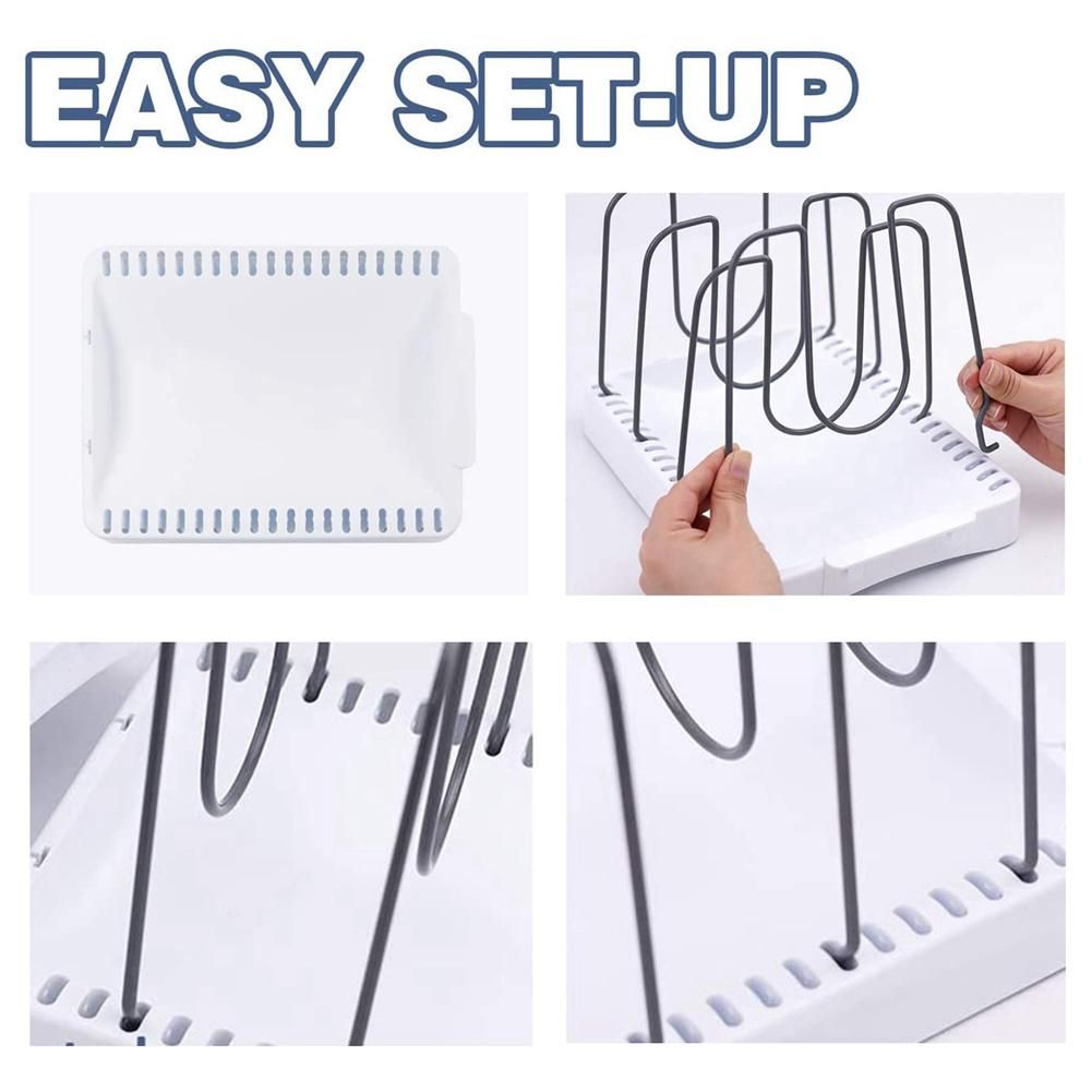 Imporous Base Avoids to Wet Table - Different with other cookware organizers, this kitchen storage rack organizer is without holes in the base. The water from washing clean cookwares will be saved on the base to avoid wetting the table.
