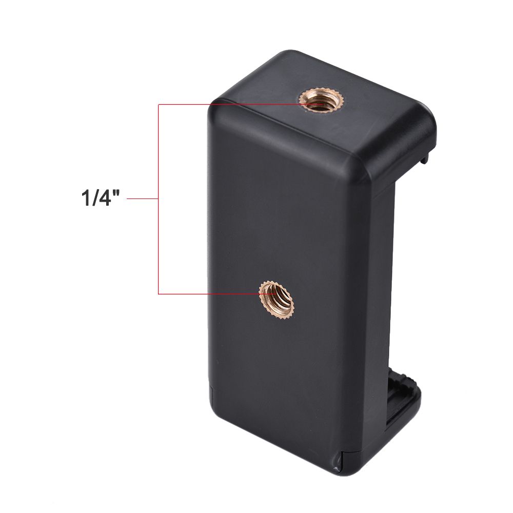 This hone clamp is suitable for various smartphones whose width within 5.2 - 8cm/2 - 3.1 quot;. The 1/4 quot; screw holes help to mount on tripod/monopod/selfie stick easily.