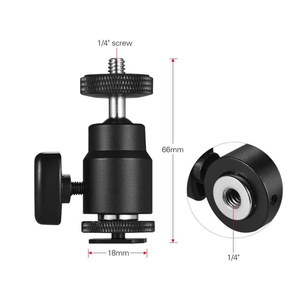 Mini Ball Head Size: 3 * 2.5 * 5.5cm / 1.2 * 0.98 * 2.2 inch (L * W * H)