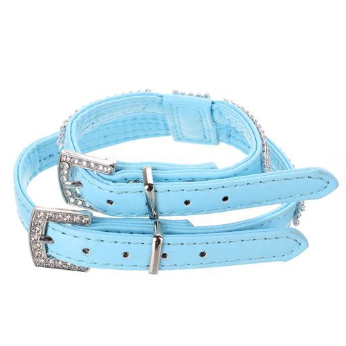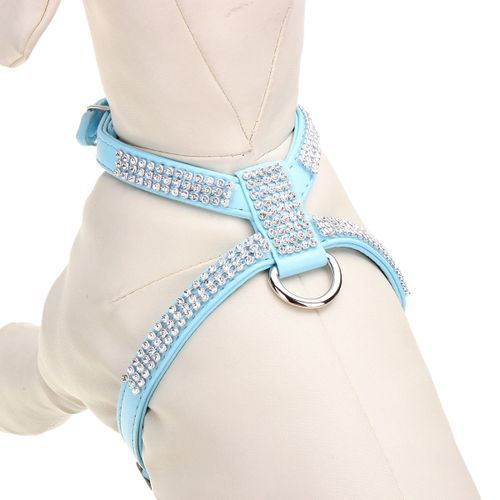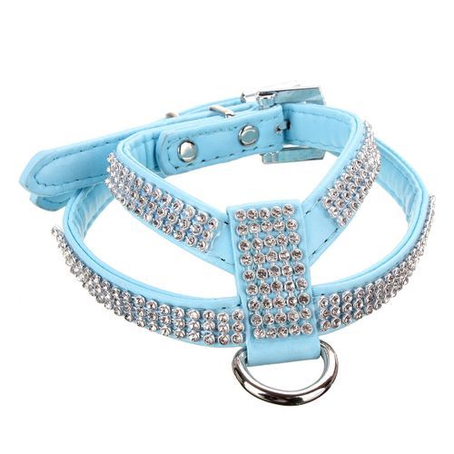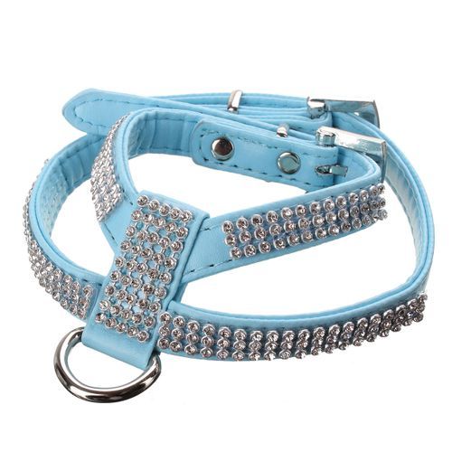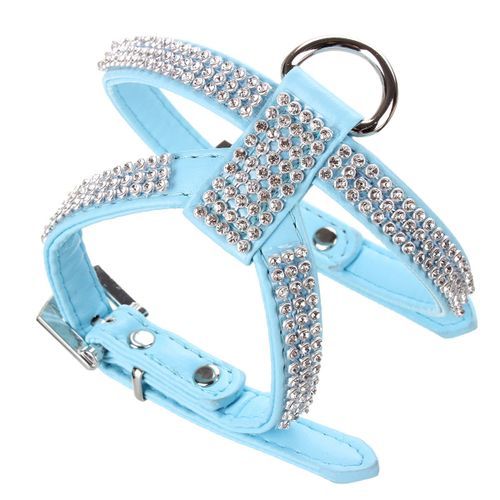 1X Adjustable PU Leather Rhinestone Diamante Pet Cat Dog Harness Strap Walk Collar//