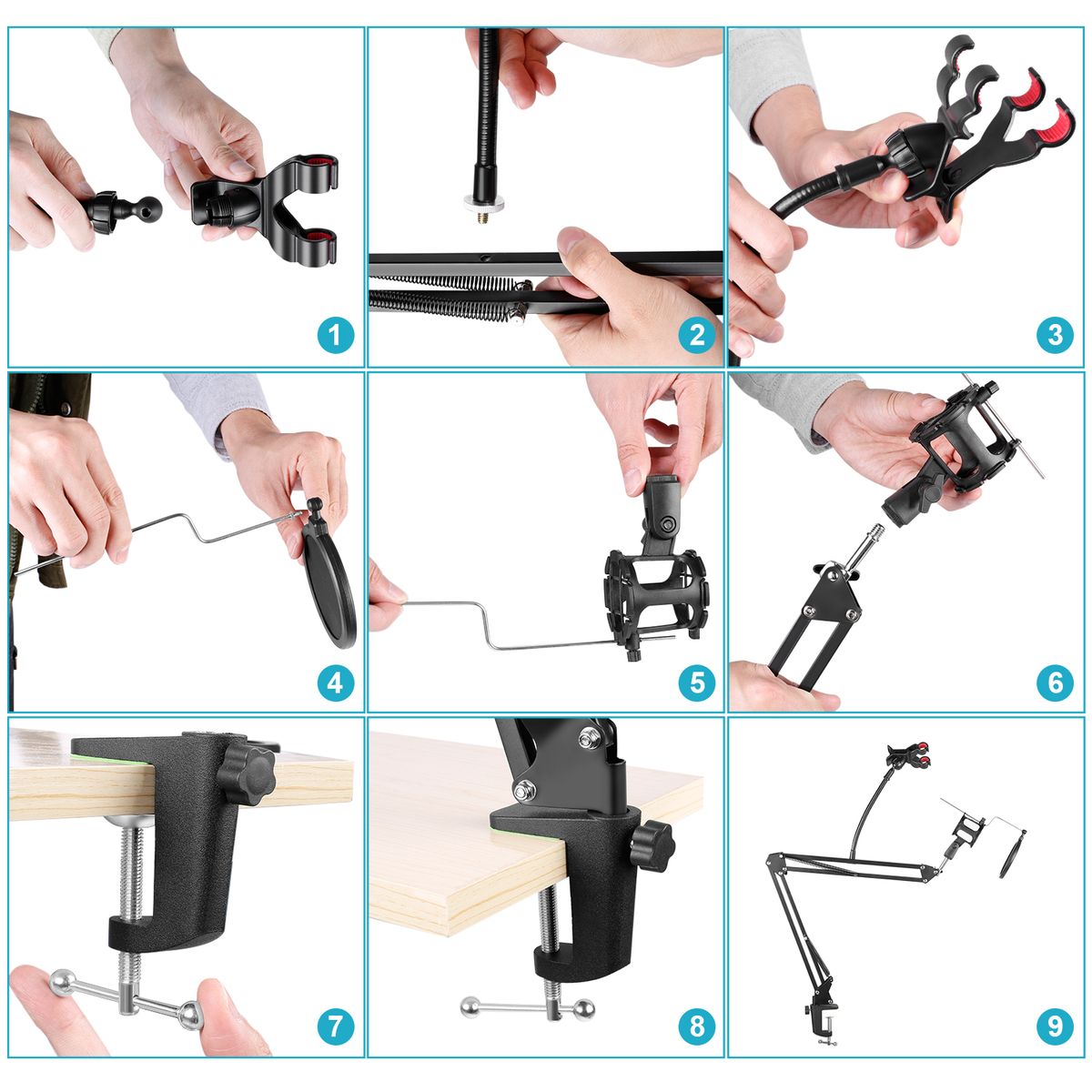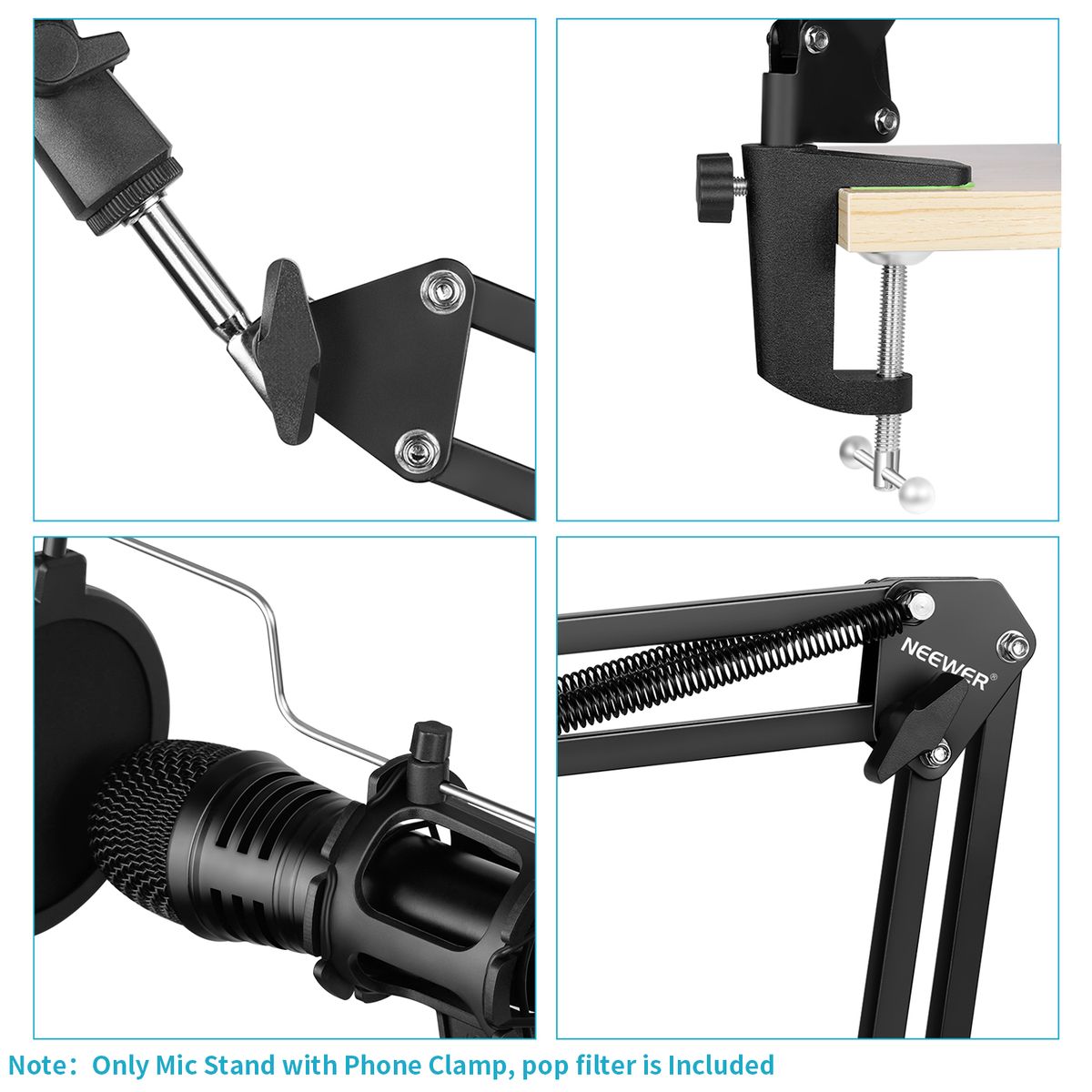 The adjustable arms allow you to adjust the suitable angle and height to show your perfect voice. Folding design, convenient to carry and space saving