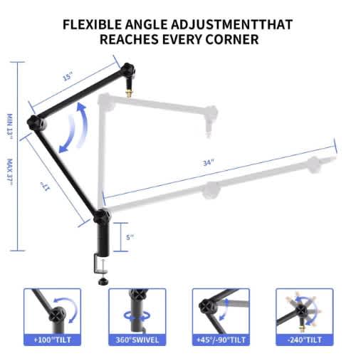 Buy Adjustable Scissors Microphone Arm boom Stand - Desk Stand Ideal for Podcasts 43.9x2x2.5" in Nigeria