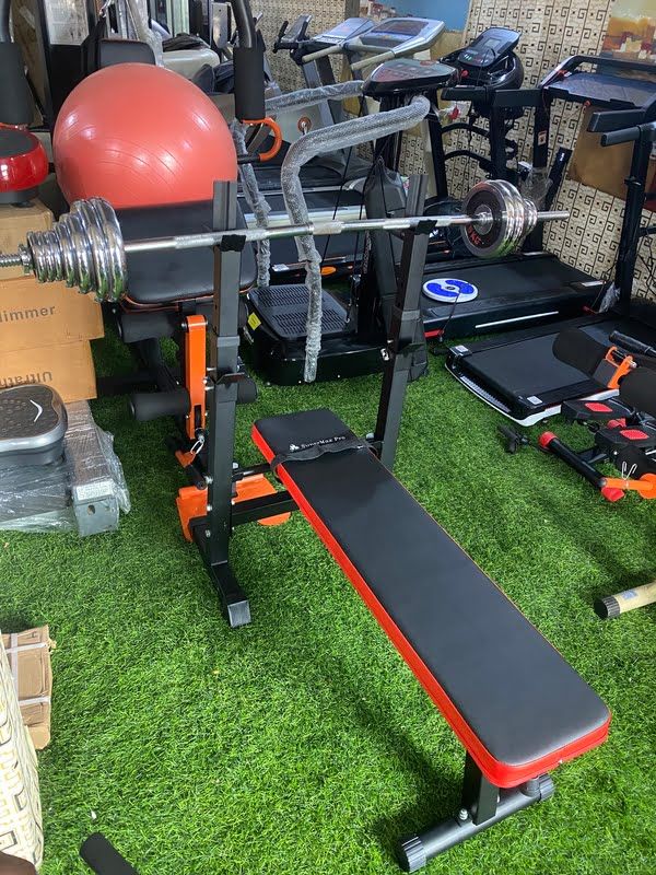- Multifunctional Workout: This workout bench suitable for versatile workouts including bench press and squats, push-ups, abdominal crunch, tricep dip, dumbbell bench, and so on.