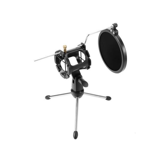 Main Features:- Desktop tripod consists of plastic body, stainless steel leg and non-slip rubber feet- Rubber rings for tightening your microphone- Super lightweight and foldable, easy to carry- It comes with windscreen filter, more sanitary and anti-vibrating