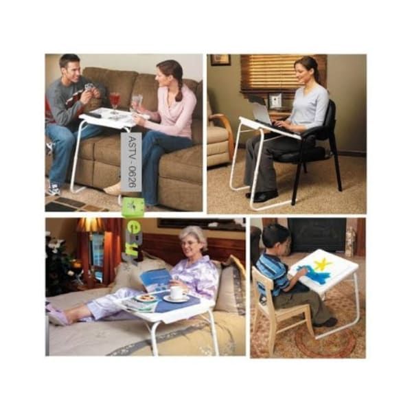 Perfect for dinners, gaming, laptops, homework or craftworks.Contoured table top glides right up to your body.Sharp edges prevent small items from rolling off.Built-in adjustable cup holder.Flexible and able to tilt various directions.Stress-free assembly, no tools required.Takes less space, ideal for small rooms and farmhouses, poolside etc.Easy folding.Table-Mate II is the transformable table that slides to you! It's the only table with a built-in adjustable cup holder and the table adjusts to 6 different heights and 3 angles; making it versatile for most activities.Table-Mate II is the perfect portable table; this multi-tasking must-have is handy as a laptop computer table or a study desk. Use it for eating while you watch TV, writing, games, arts and crafts, puzzles, and more.