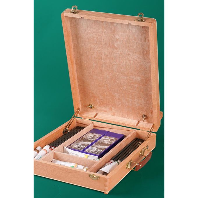 Box Easel Design with interior storage box, storage painting supplies.