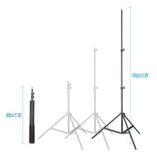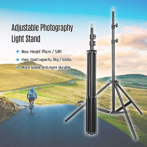 Max. height is 176cm / 5.8ft, and max. load capacity is 3kg / 6.6lbs, suitable for studio reflector, softbox, LED video light, etc.
