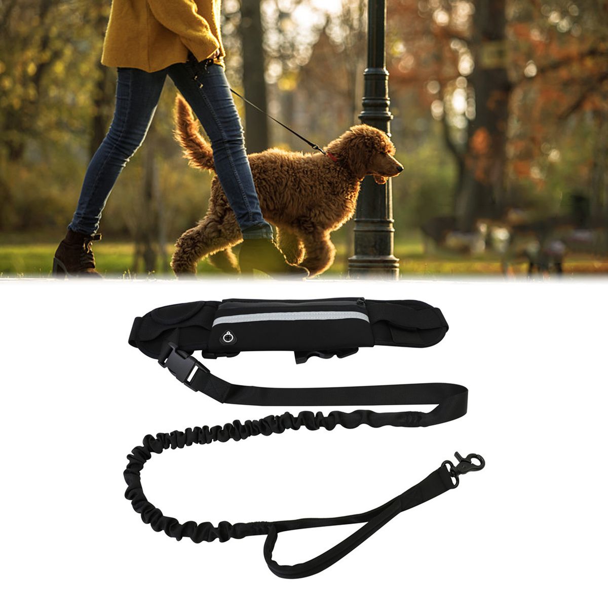 Hands free: When you are running, walking, you can make your hands free by clasping the dog bungee leash on the hook of the dog leash fanny bag. You can enjoy your outdoor sports with your dog happily.