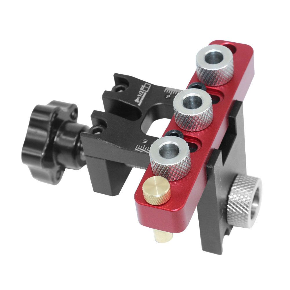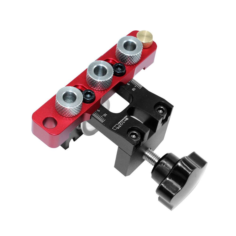 8/15mm Metal bushings accurate alignment when drilling hole,easy to adjusting drilling height and hole depthSpecifications:Material: Be made of 6061 aluminum alloy, anodizing surface treatment,laser engraving scaleMaximum clamping range: 38mmParts:stainless steel drill sleeve+brass stop blockAdjustable Metal BushingsPackage included:1 set x Doweling Jig