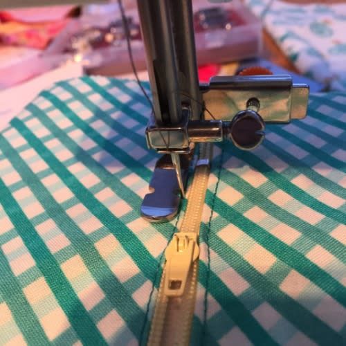 - The foot is fitted with left and right needle guide and adjustable screw which allows you change the position and direction of zipper without turning your fabric around.