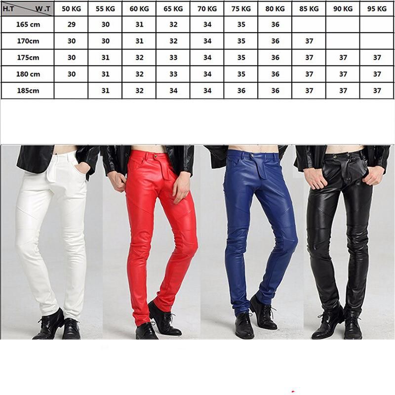 1X Idopy-pantalones ajustados de poliuretano para hombre Pantalon ajustado rojo Sexy de motorista de cuero azul