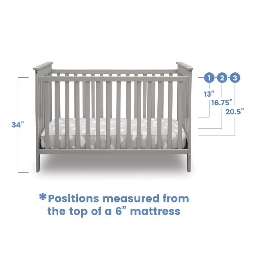 Adjustable height mattress support with 3 convenient positions to grow with your baby