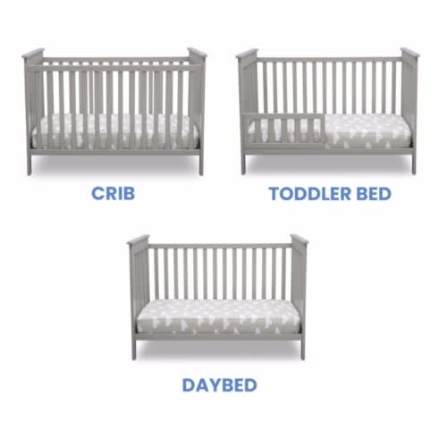 The adaptable design of the Adley 3-in-1 Convertible Baby Crib from Delta Children coordinates with many styles-pair it with a mid-century dresser for a modern look, a rustic storage piece for a farmhouse feel or keep it classic with timeless d & eacute;cor. The crib's straight lines, airy slats, and convertible design that transforms from a crib to a toddler bed or daybed makes it the most versatile choice. The Adley 3-in-1 Convertible Baby Crib from Delta Children has everything you need to outfit your child's bedroom with a cozy, safe and stylish spot for sweet dreams from birth through toddlerhood.