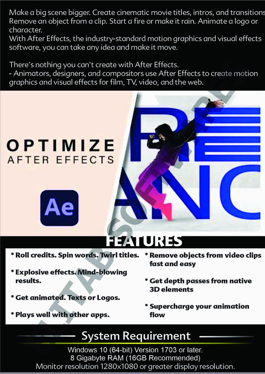 Make a big scene bigger. Create cinematic movie titles, intros, and transitions. Remove an object from a clip. Start a fire or make it rain. Animate a logo or character. With After Effects, the industry-standard motion graphics and visual effects software, you can take any idea and make it move.