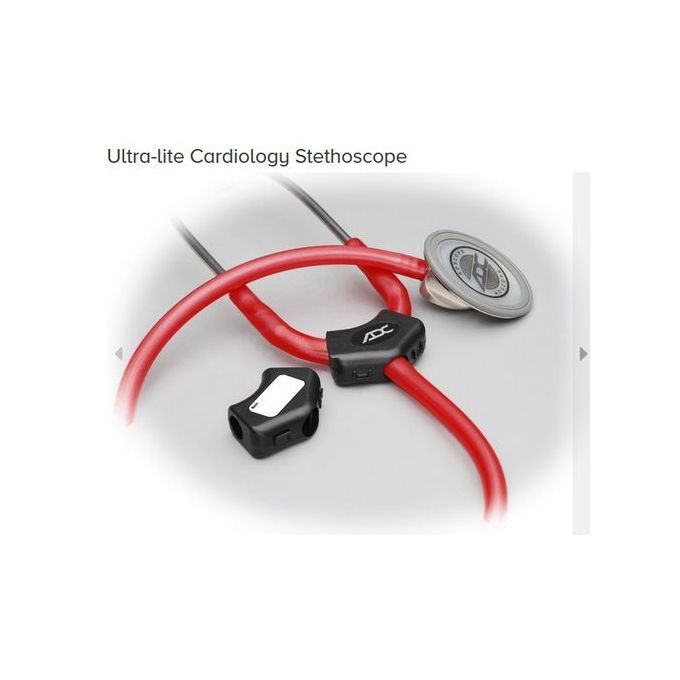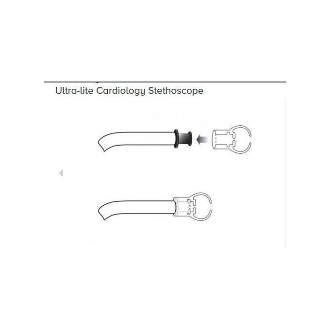 - Cardiology headset with large-bore aluminum binaurals fixed at 15° angle to maximize comfort and acoustic seal